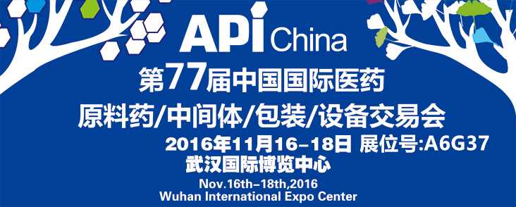 2016年11月16日-18日,"第77屆中國國際醫藥原料藥、中間體、包裝、設備交易會 API China & PHARMPACK & SINOPHEX"將在武漢國際博覽中心舉行。作為有多年植物提取經驗的 西安昌岳植化與您相約武漢API,展位號A6G37。